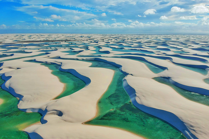 Lençóis Maranhenses, located in the north of Brazil, is a vast national park made up of white sand dunes with deep-blue lakes in between them. The region was declared a national park in 1981. The name of this 1550 sq… |